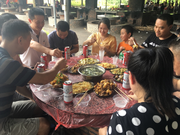 飄流結(jié)束集合前往晚餐地點(diǎn),公司已經(jīng)預(yù)定了豐盛的美味佳肴,因是廣東菜系,為了照顧口味差異還特別貼心準(zhǔn)備了辣醬。原計(jì)劃是晚飯后參加“瑤族風(fēng)情篝火晚會”,體驗(yàn)瑤族風(fēng)情。后因路況問題,考慮到安全第一決定入住酒店,養(yǎng)精蓄銳為明天的旅途做準(zhǔn)備。